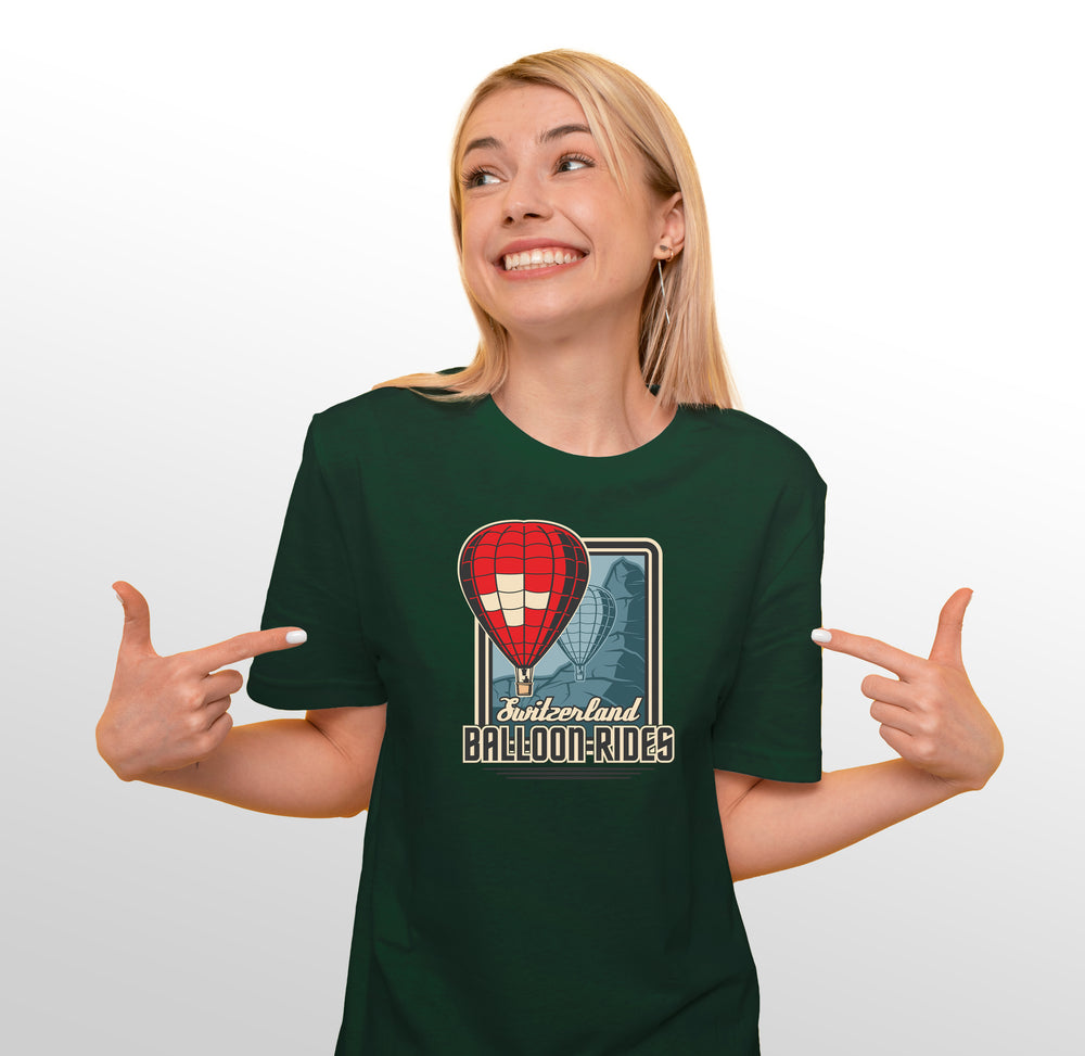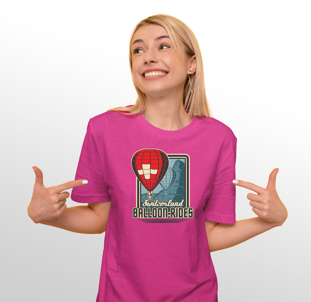 SWISS - T-Shirt (Ballon), Ideal als Geschenk oder für 1. August. Bei Sonderwünschen einfach Kontakt mit uns aufnehmen. Produktionszeit 3-5 Tage. Reduzierter Preis bei grösserer Bestellmenge